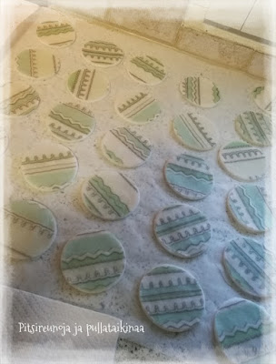 Leikataan serveteistä vanulappujen kokoisia ympyröitä.